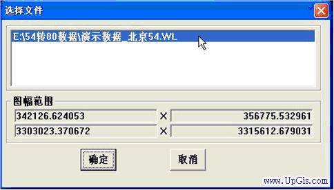 选中待转换的文件“演示数据_北京54.WL”,单击“确定”按钮;