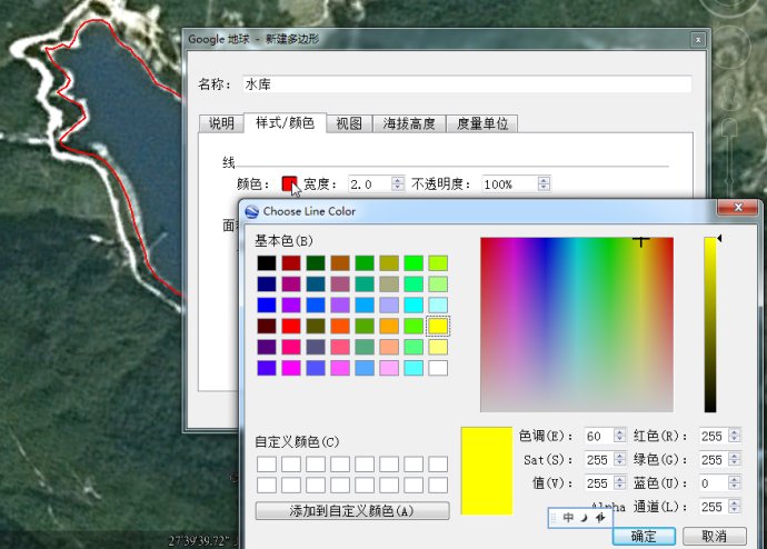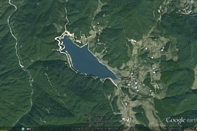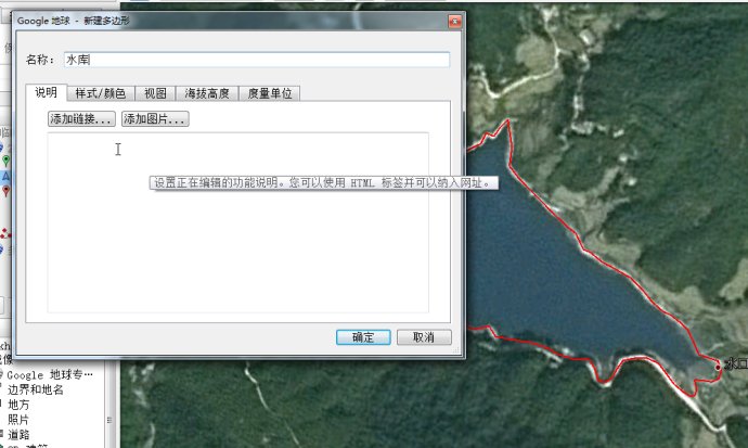 1、打开谷歌地图,找到要制作的区域,比如这个水库