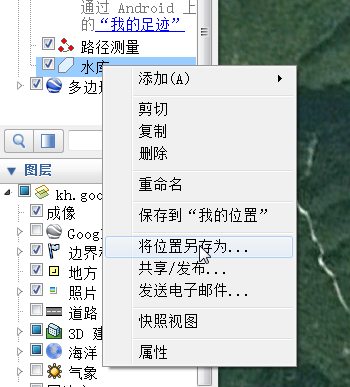 7、对保存好的“水库”右键,选择“将位置另存为”