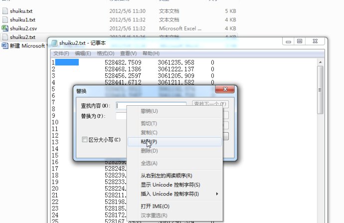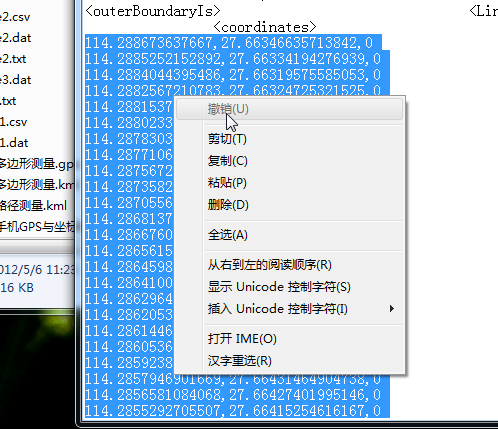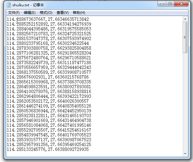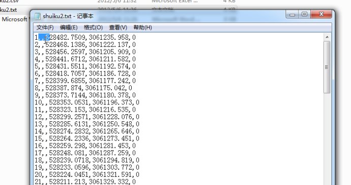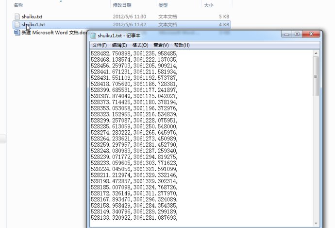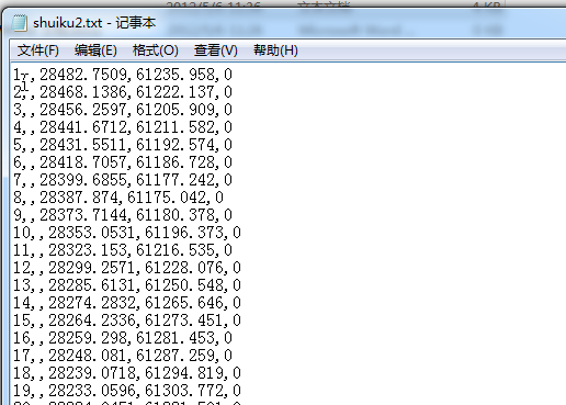 15、将分行好的大地坐标复制到新建的一个“shuiku.txt”文本里面。