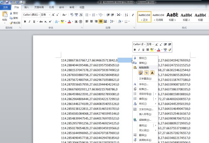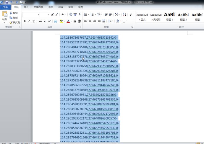 10、复制这些大地坐标到word里面进行编辑,因为这些坐标是没有分行排列的,而是用一个一个的空格接一起: