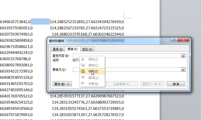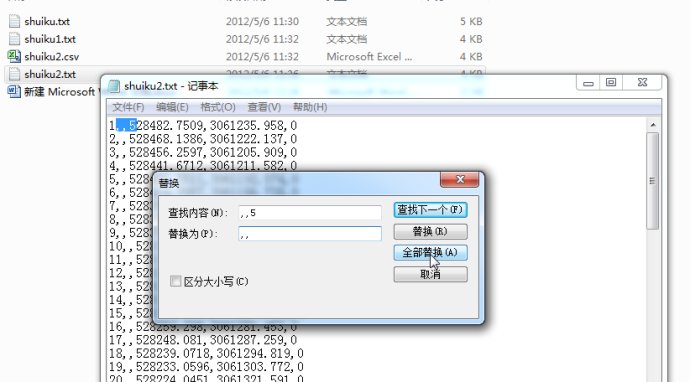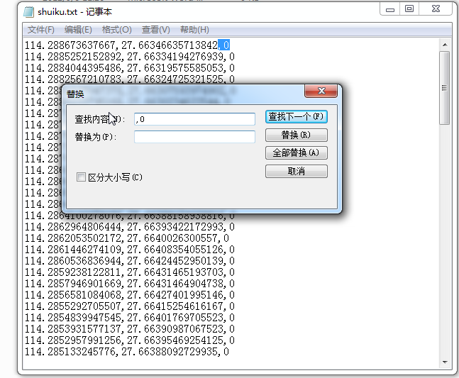 34、由于我只需要5位数的坐标,所以把多余的数字也全部删除,同样才用替换的方法: