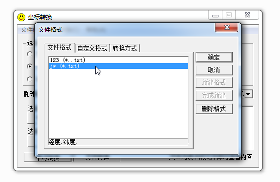19、首选自定义一种格式,我这里自定义的格式为“jw(*.txt)”也就是(经度,纬度,)的格式,选择这个格式: