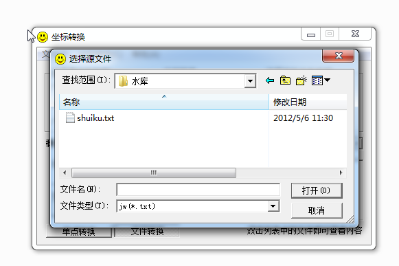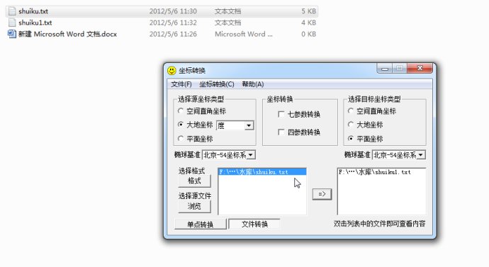 23、点转换图标,可以看到已经转换成了“shuiku1.txt”。这里注明下,我是把大地坐标转换成北京54坐标。