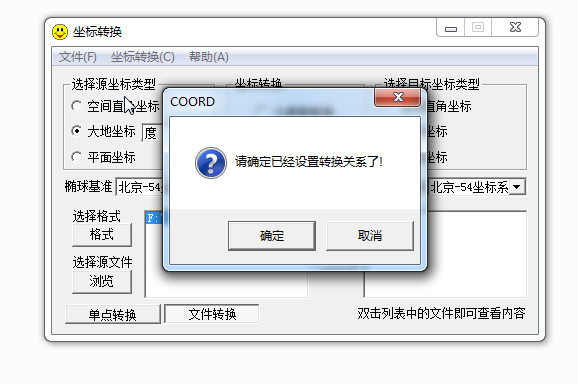 18、打开coord4.0,源格式选择大地坐标(度),选择“文件转换”