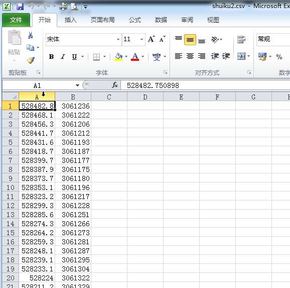 14、这样就得到了分行好的各点大地坐标,方面我们批量转换成平面坐标。