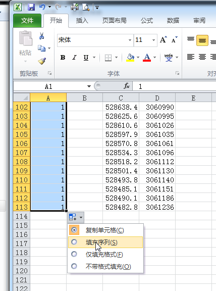 28、先插入2列,第一列填充序号,代表点号,第二列空白