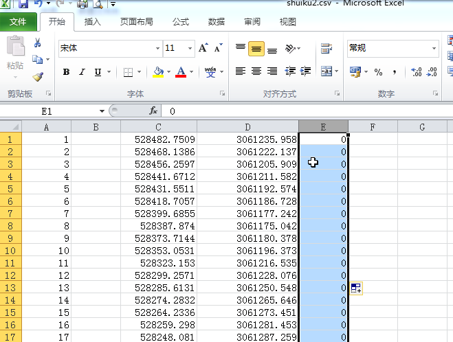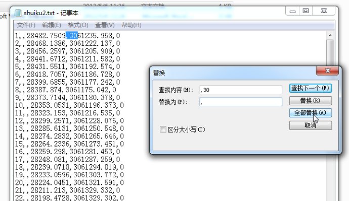 29、后面加一列,代表高程,全部填充“0”,加这一列是由于南方CASS数据格式的需要。