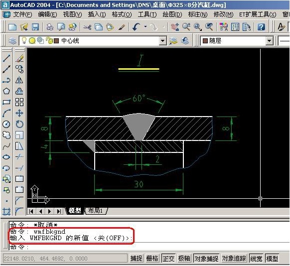 1、更改CAD系统变量WMFBKGND值为OFF,使CAD背景为透明,